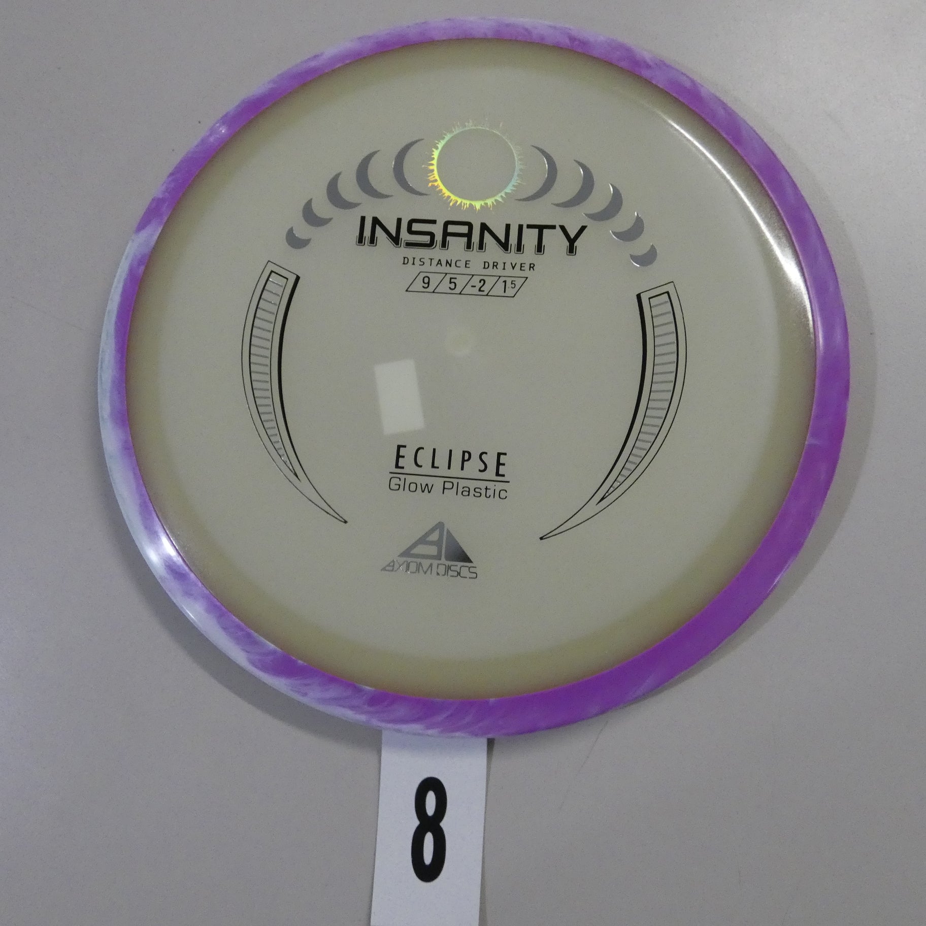 Another Special Edition release (for Halloween of 2021), the Eclipse Insanity is making its absolutely glowing return as a stock offering! Maintaining flight numbers of 9 | 5 | -2 | 1.5, the Eclipse Insanity is now available any time you need a consistent stable to understable distance driver for your bag. High power players will have a precise flip-up or turnover disc for day or night, while average power players will have a remarkably straight distance driver. Designed with a softened profile to mimic a more worn-in disc, explore the multitude of shot shapes the Eclipse Insanity can bring to your game by grabbing your own from your favorite local or online retailer!