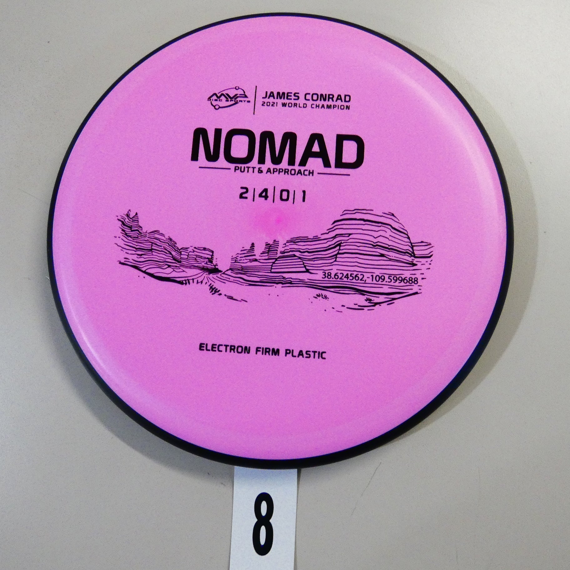 Designed by the World Champion himself - the Nomad has everything James Conrad desires in a putter. From the depth and shoulder height, all the way down to the size of the small bead - the Electron Nomad is Jamesโ vision of an ideal putter. Expect a neutral flight inside the circle, with some fade kicking in at circle two - making the Nomad great at holding anhyzer or hyzer angles when need be. The Nomad is exactly how James wants a putter to feel in his hand, and exactly how he wants them to fly. Comfortable, with a clean and consistent release, the Nomad is ready for your disc golf journey - how far will you take it?