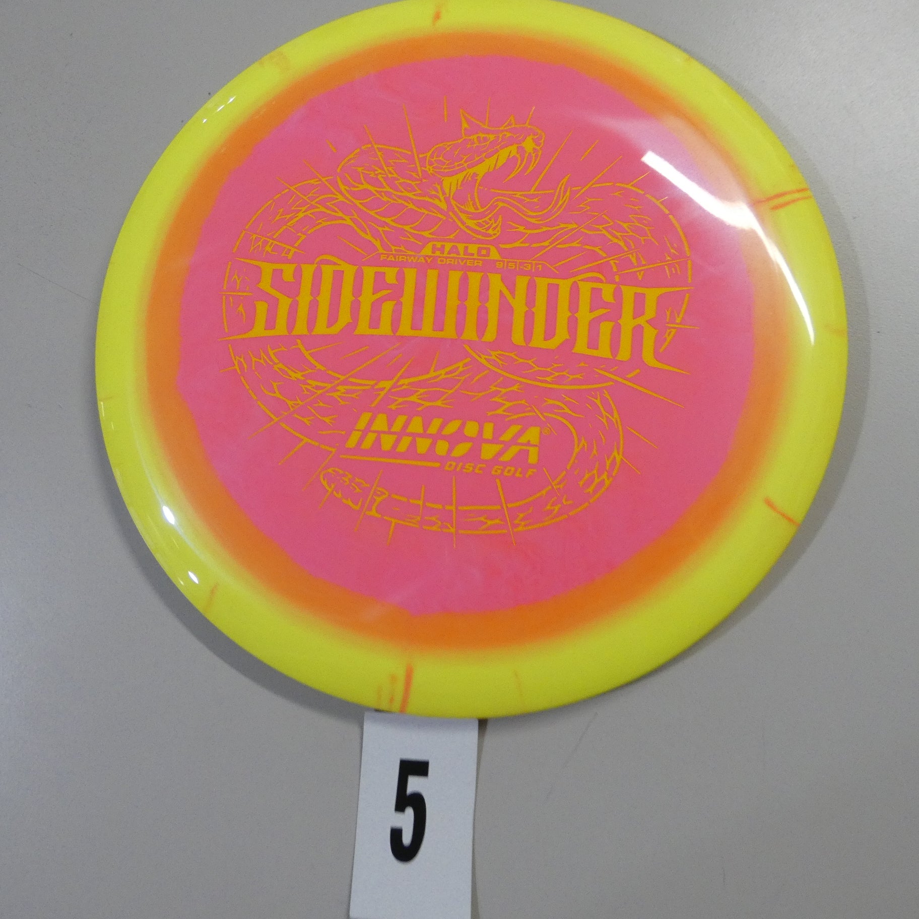 The Sidewinder, one of Innova's most versatile molds, is now available in Halo plastic. Great for flip up distance shots through the woods, sidearm flex shots, power rollers, and more, this disc pairs great with a Firebird or Thunderbird to cover the full range of controlled driver lines. Respect the Halo Sidewinder – just because the disc has a -3 Turn rating doesn’t mean it can’t hold up to some good power.