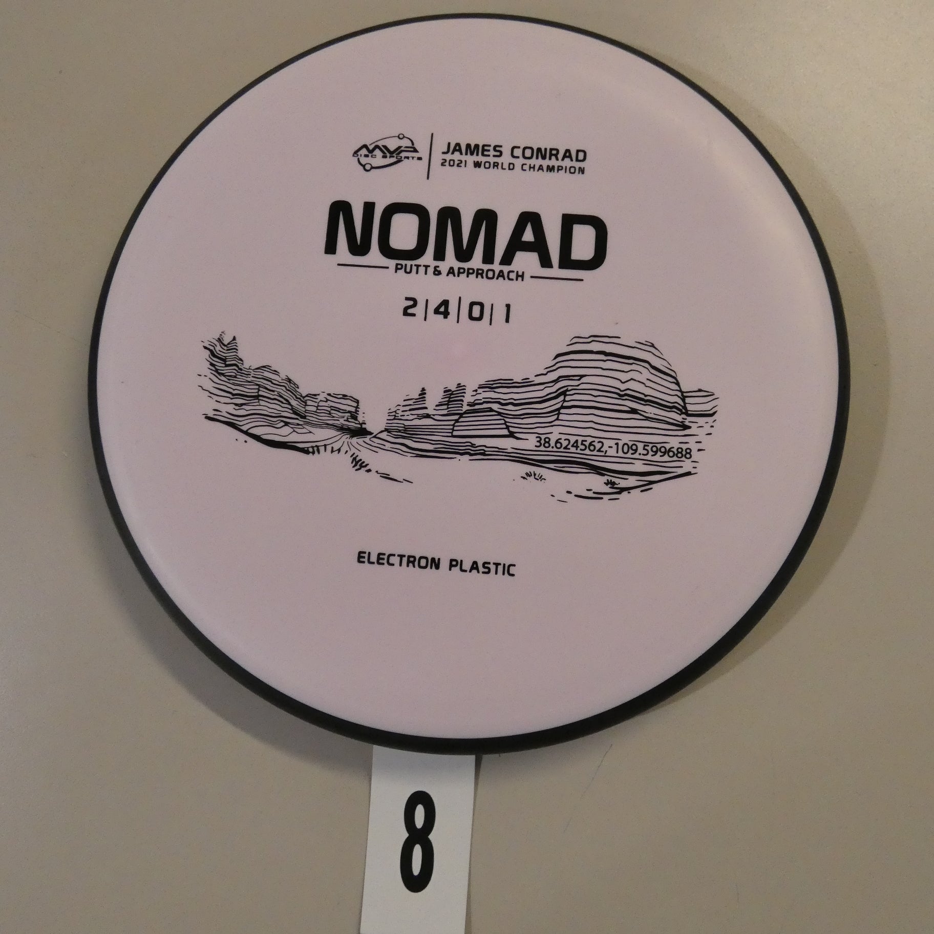 Designed by the World Champion himself - the Nomad has everything James Conrad desires in a putter. From the depth and shoulder height, all the way down to the size of the small bead - the Electron Nomad is Jamesโ vision of an ideal putter. Expect a neutral flight inside the circle, with some fade kicking in at circle two - making the Nomad great at holding anhyzer or hyzer angles when need be. The Nomad is exactly how James wants a putter to feel in his hand, and exactly how he wants them to fly. Comfortable, with a clean and consistent release, the Nomad is ready for your disc golf journey - how far will you take it?