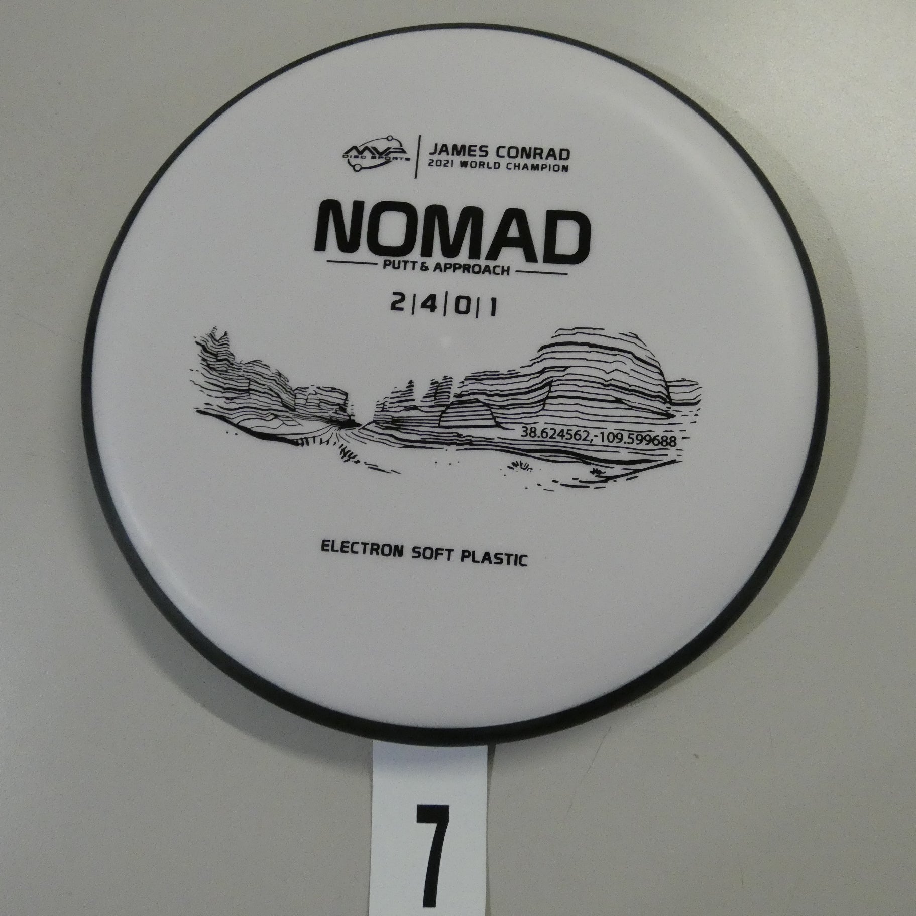 Designed by the World Champion himself - the Nomad has everything James Conrad desires in a putter. From the depth and shoulder height, all the way down to the size of the small bead - the Electron Nomad is Jamesโ vision of an ideal putter. Expect a neutral flight inside the circle, with some fade kicking in at circle two - making the Nomad great at holding anhyzer or hyzer angles when need be. The Nomad is exactly how James wants a putter to feel in his hand, and exactly how he wants them to fly. Comfortable, with a clean and consistent release, the Nomad is ready for your disc golf journey - how far will you take it?