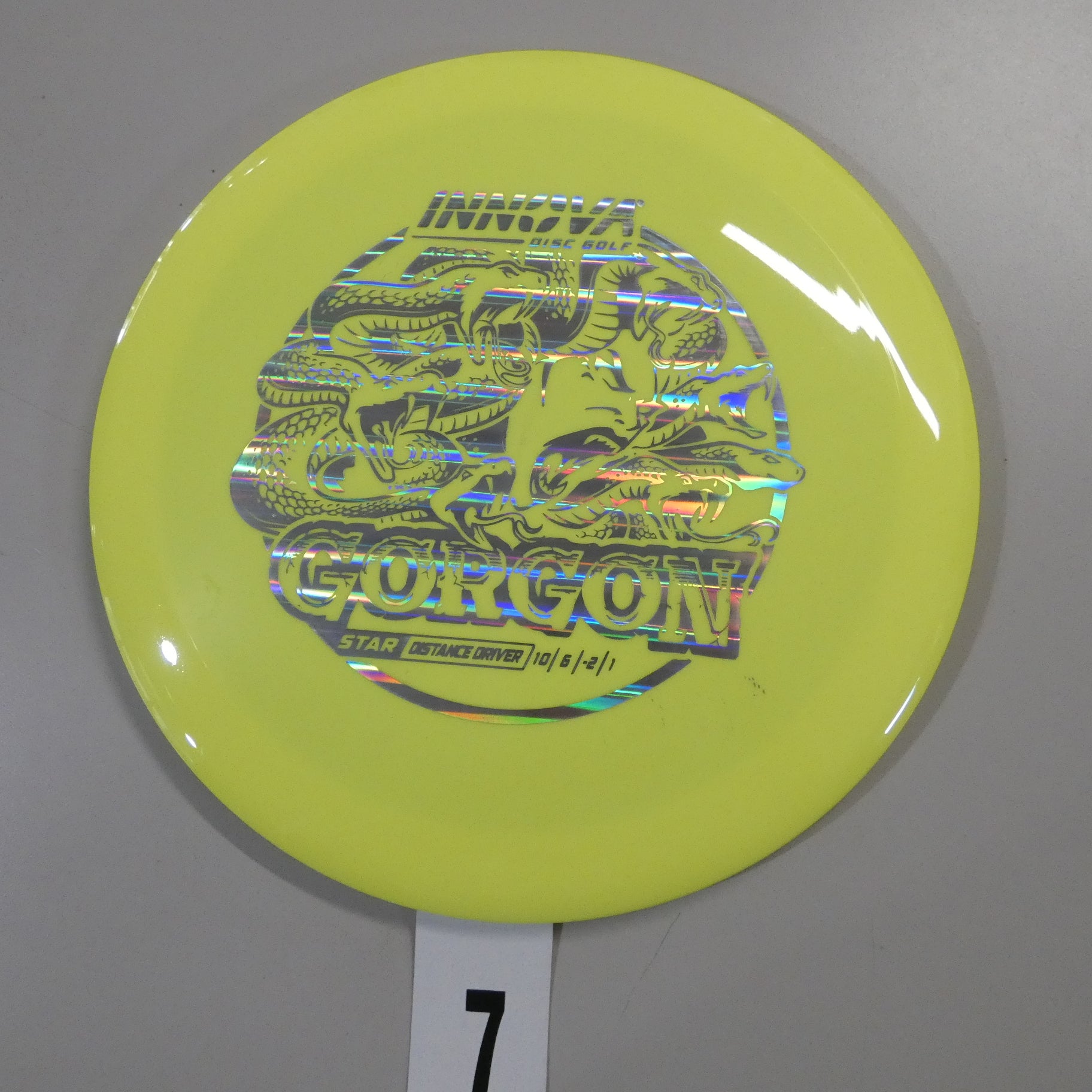 Introducing the Gorgon, a disc that merges the feel, precision, and ease of a Fairway Driver with the reach of a Distance Driver. Its flight? Arrow-straight glide with a steadfast fade, mirroring the Gorgon's unwavering gaze. Experience the legend—drive like a deity, conquer the course.