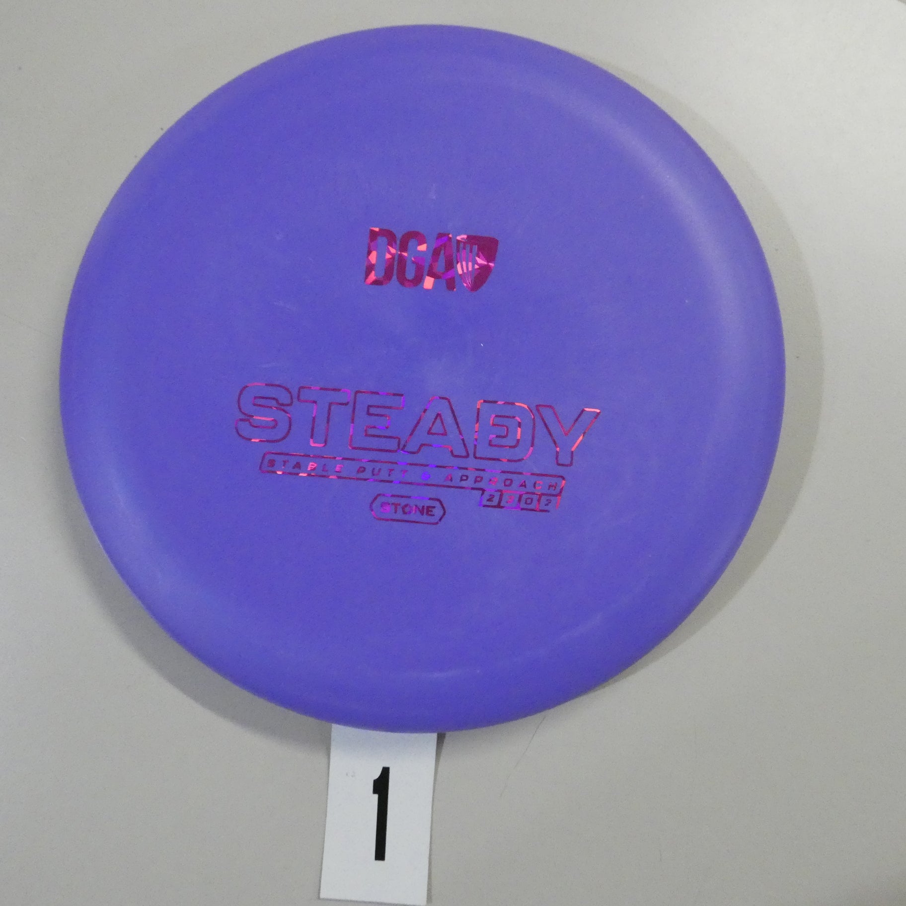 The DGA Steady putt and approach disc pays homage to the father of disc golf and DGA’s founder Ed Headrick who got his nickname from his steady hand and putting prowess. At low speeds, the Steady putter has a hyzer finish and with added speed, the putter provides a steady straight flight path.